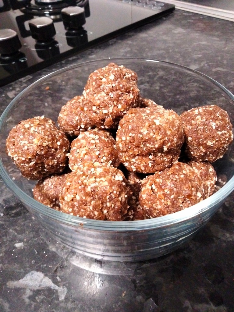 Los que me conocen, saben que los frutos secos están presentes en mi alimentación diaria. Siempre en crudo, sólos o en forma de barritas o como me resulta más fácil y menos laborioso, en forma de bocaditos o bolitas, del tamaño de una nuez (con cáscara), que normalmente elaboro semanalmente, o bien para llevar al trabajo, para desayunar o como snack en momentos puntuales.